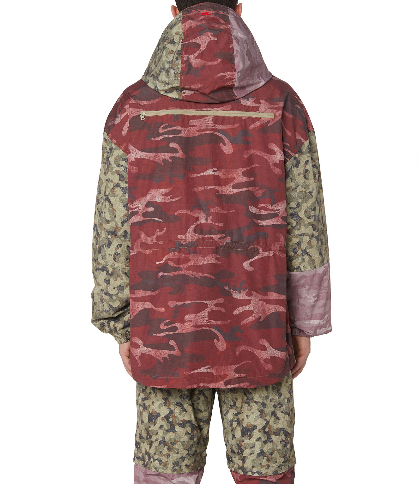 פריט מקולקציית דיזל ספורט - ג׳קט מבד עמיד למים ורוח עם שני הדפסי הסוואה שונים בגווני ירוק קומו, עם כובע קפוצ׳ון וכיסים עם רוכסנים