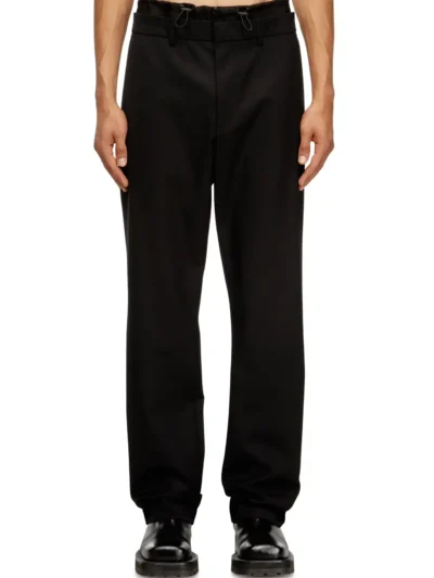 These men's black trousers are tailored from a wool blend in a slim, tapered-leg fit. The back has a wide belt loop in Diesel's DNA fabric – denim – and a discreet Oval D logo embroidered above the pocket.