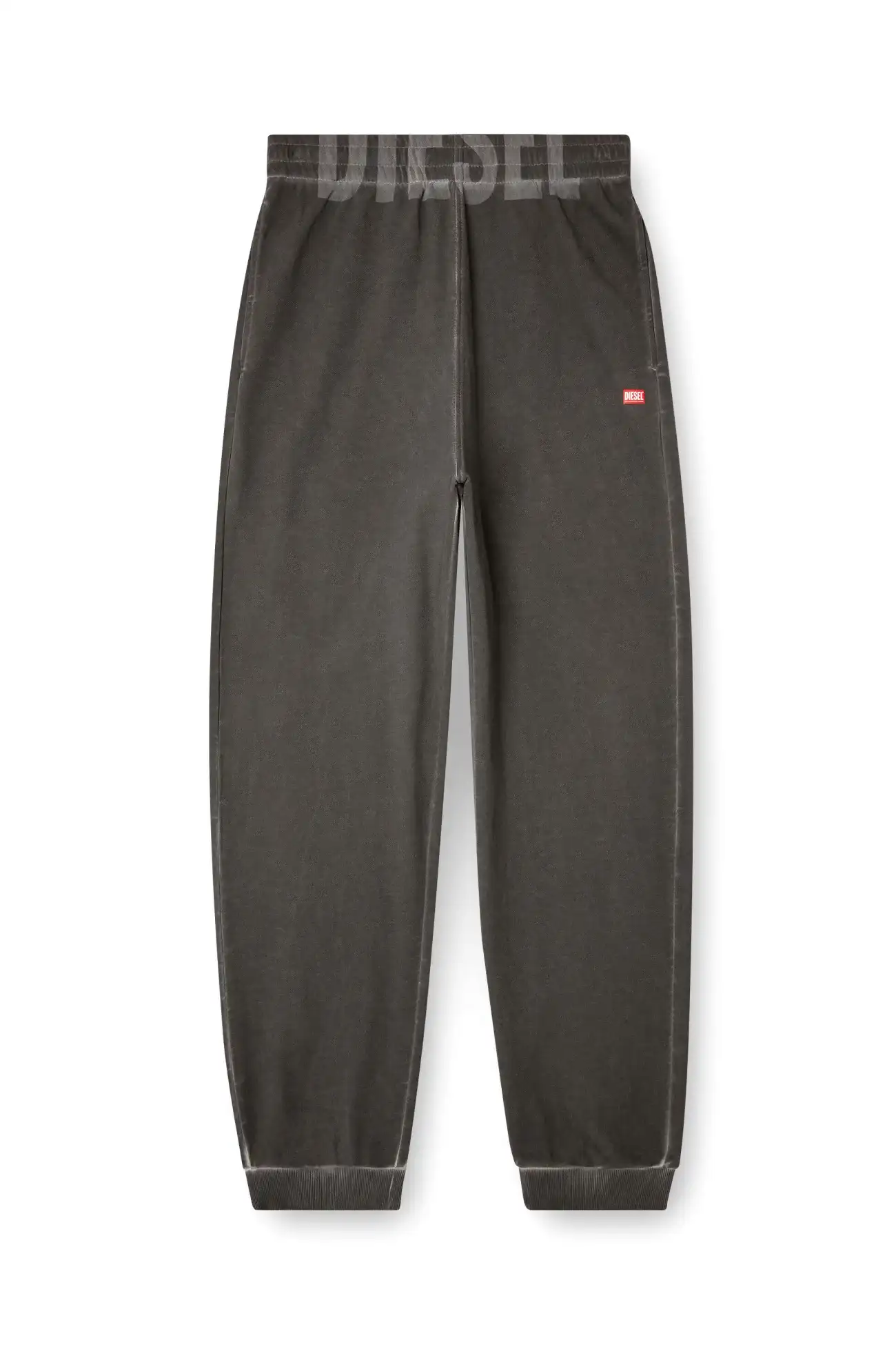 Regular fit jogger pants made of cotton, featuring a practical internal drawstring for optimal comfort. Finished with ribbed cuffs at the ankles, they have hidden pockets in the front and an applied pocket on the back. The elastic waistband is decorated with the logo created using laser technique.