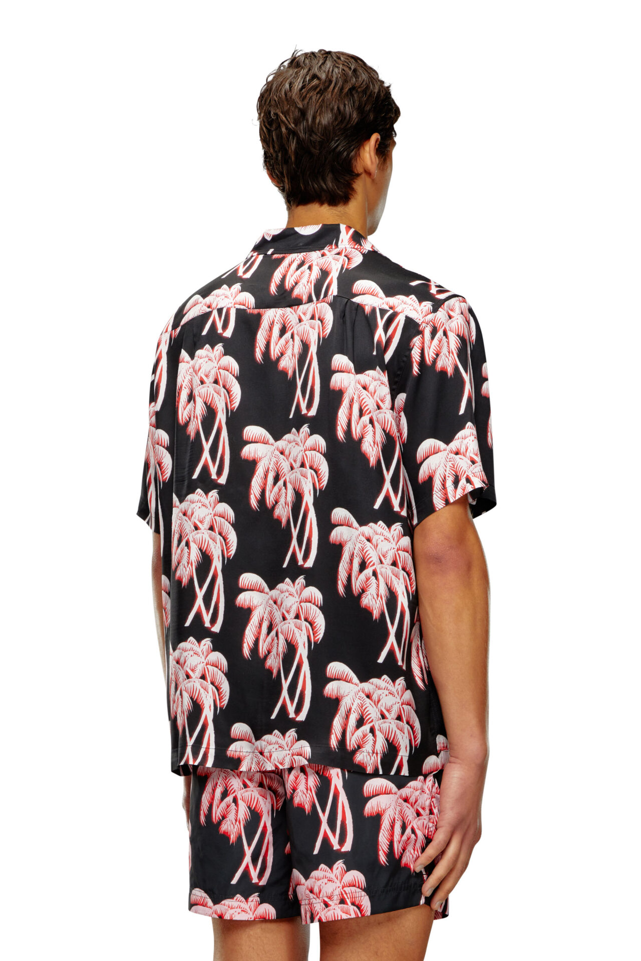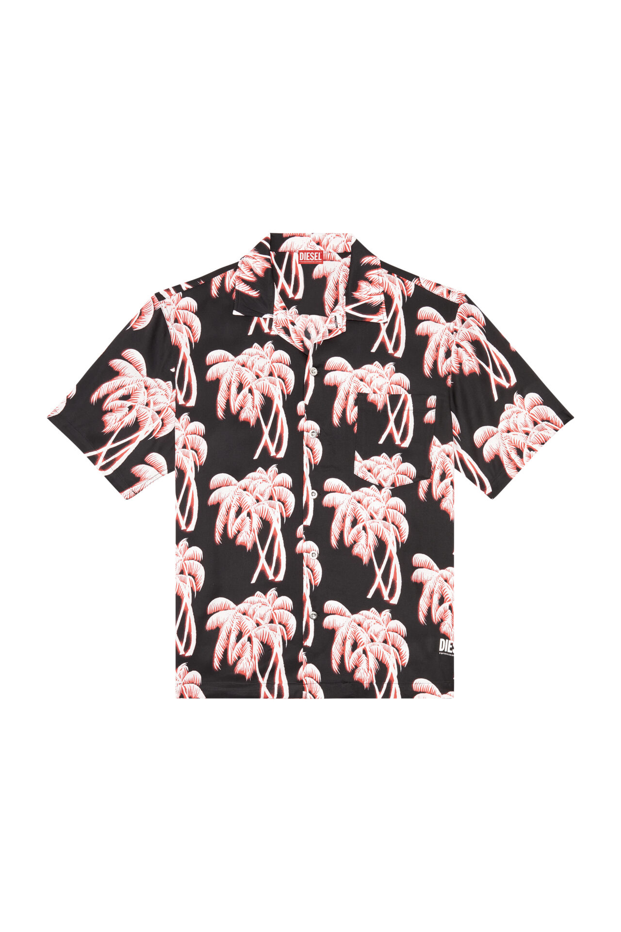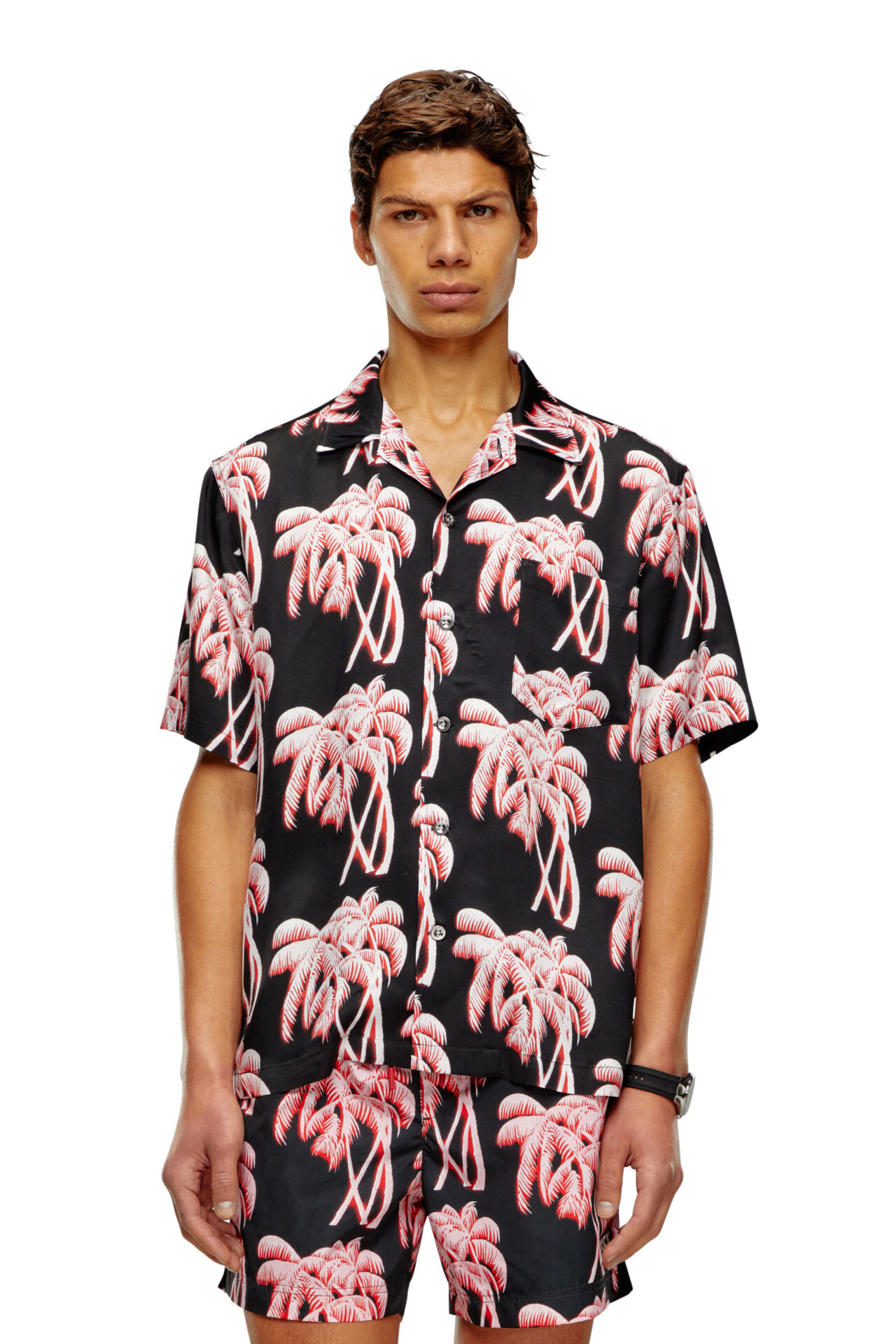 Patterned with high-contrast palm trees, this men's printed shirt is perfect for the beach and beyond. It's crafted from smooth and lightweight ECOVERO™ viscose with a chest pocket and metal buttons.