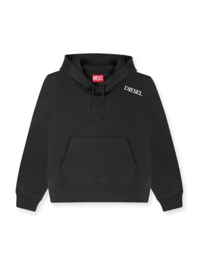 סווטשרט שחור עם הדפס צבעוני של זבוב, כובע קפוצ׳ון וכיס קדמי