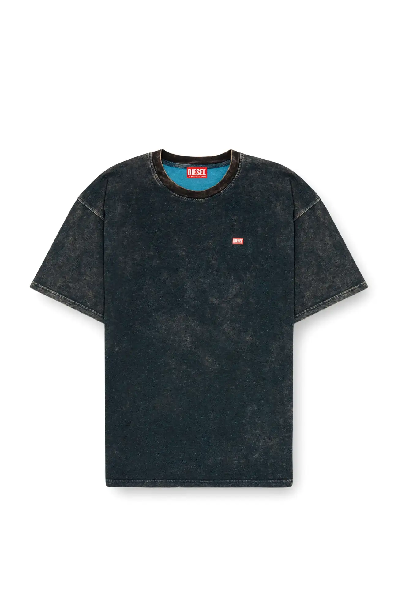 Crew neck t-shirt with short sleeves and relaxed fit, made from vanisé jersey. The garment is crafted using random acid-washed dyeing and washing techniques, giving it a worn-in look. The logo is applied on the left side of the chest.