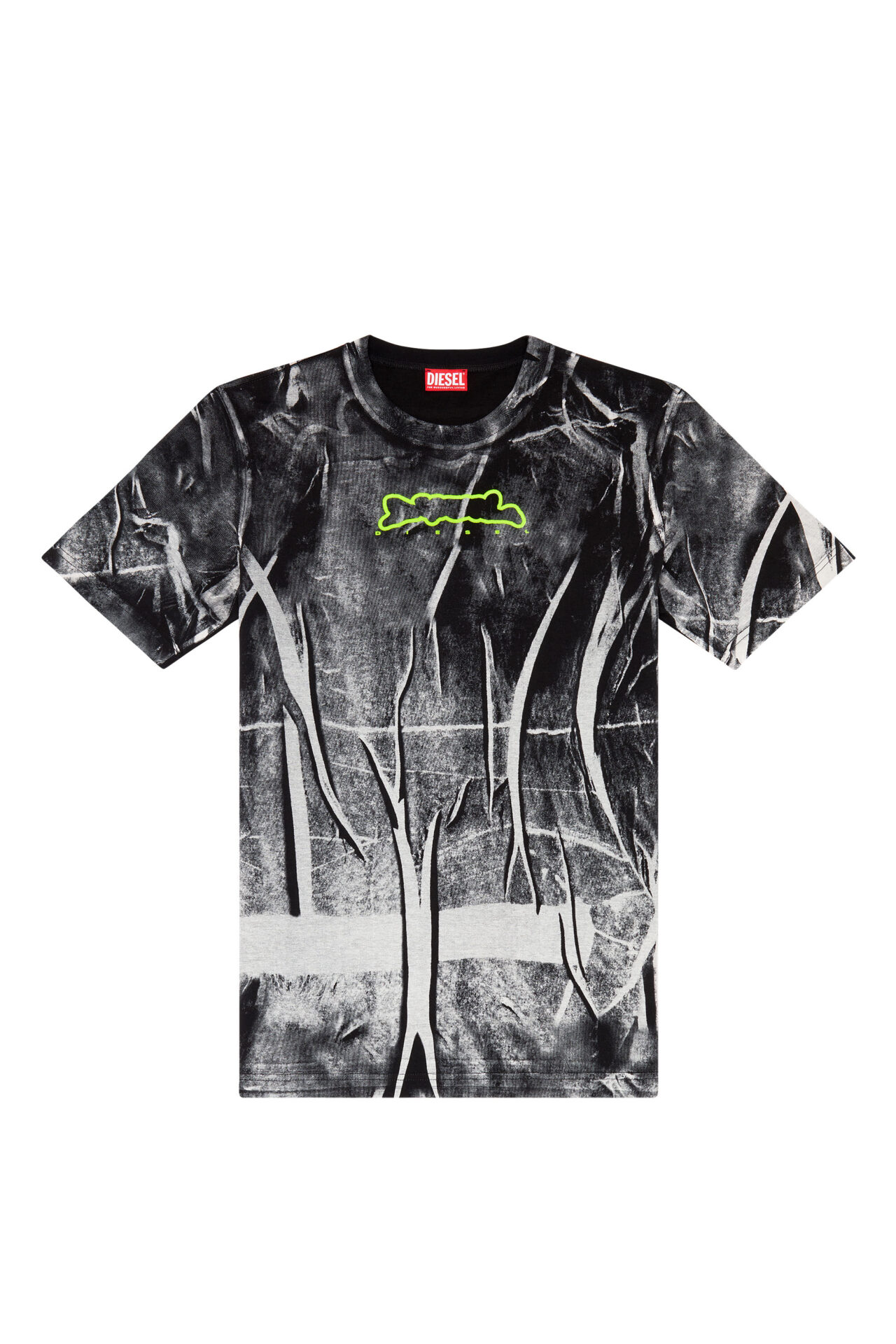 This men's regular-fit tee is built from light cotton jersey. The printed artwork on the front creates a creased look. Finished with flocked Diesel outline logos on the chest and back.