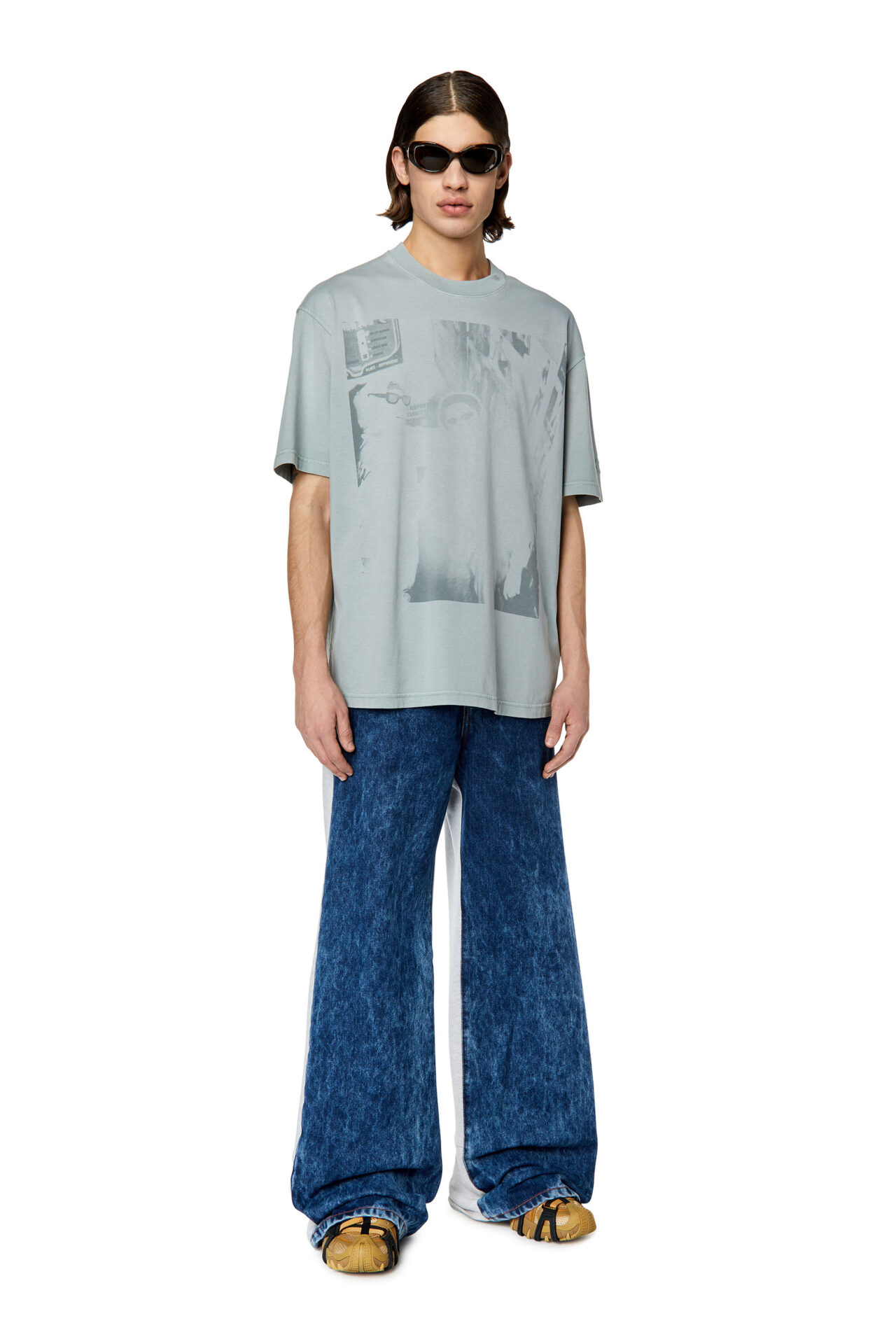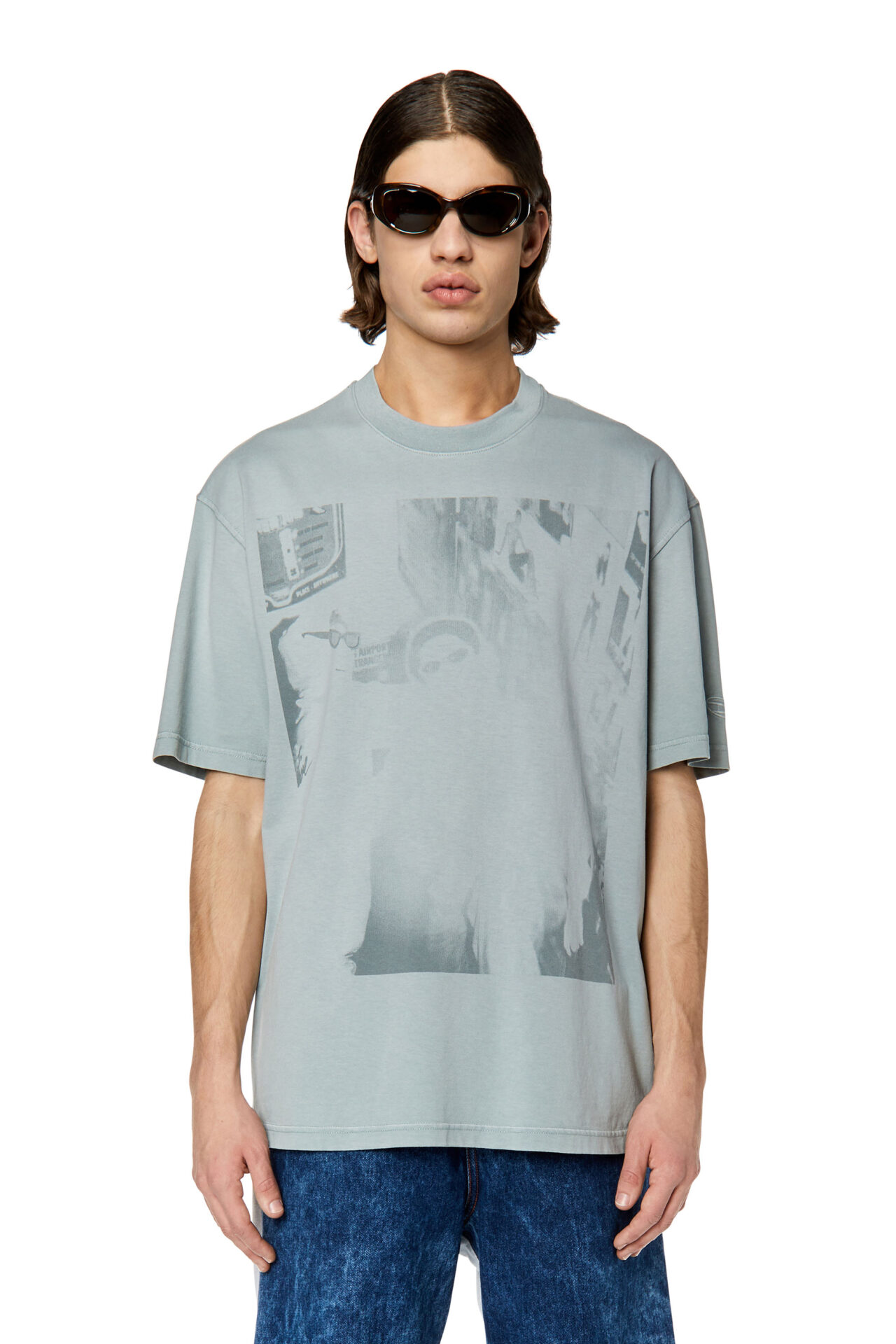 Styled with a loose fit, this men's cotton jersey T-shirt is screen-printed with a tonal party photo on the front. A manual spray treatment creates a faded look. Banded with a tonal embroidered oval D logo on the left sleeve.