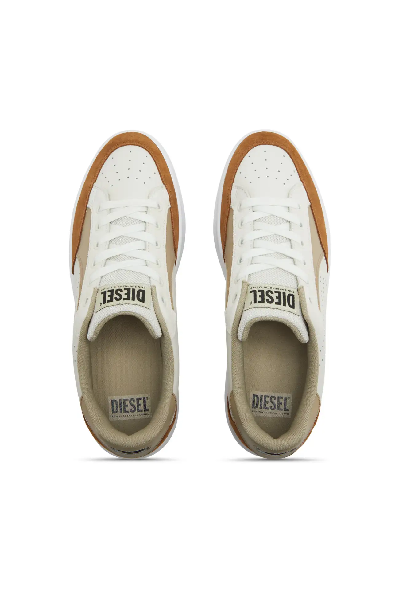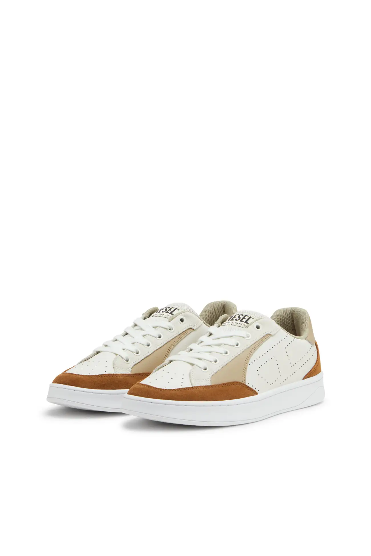 סניקרס court משולבות עור ובד עם קישוט Oval D - חום/לבן