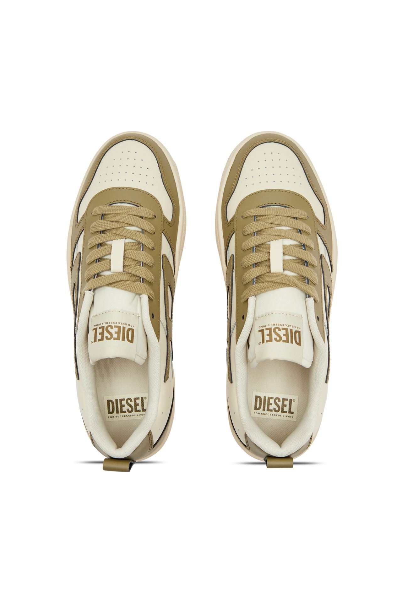 סניקרס נמוכות מעור וניילון בצבע שמנת וירוק זית, עם לוגו D