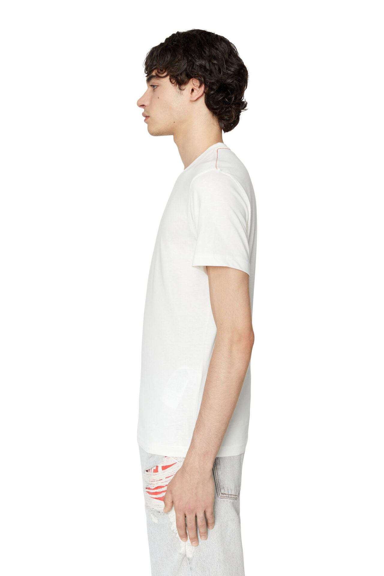 Men's fitted T-shirt made from compact cotton jersey. This tee is detailed with contrast stitching along the shoulders and has a zig-zag stitched logo patch on the chest that reads "Do not remove this label".