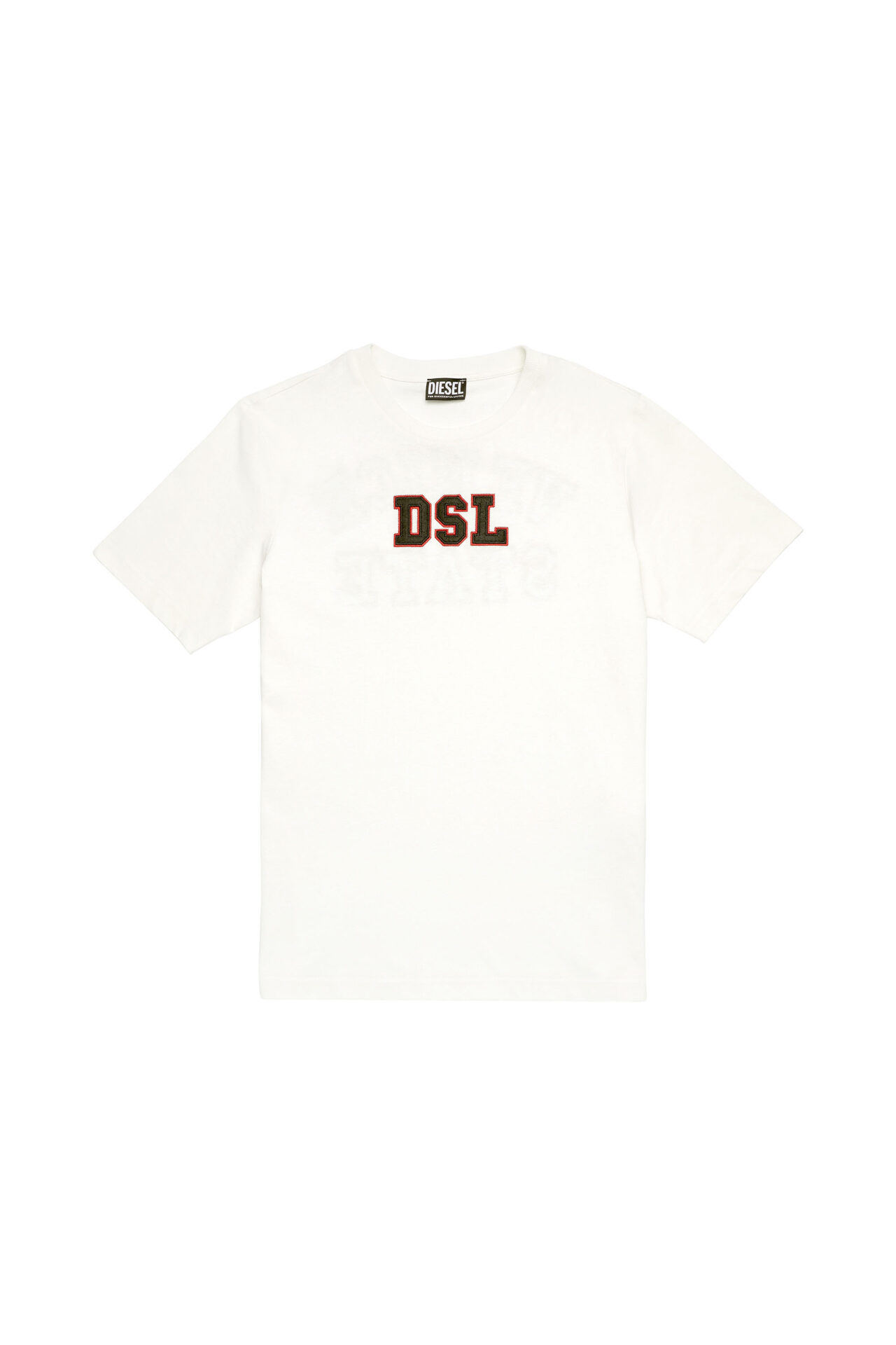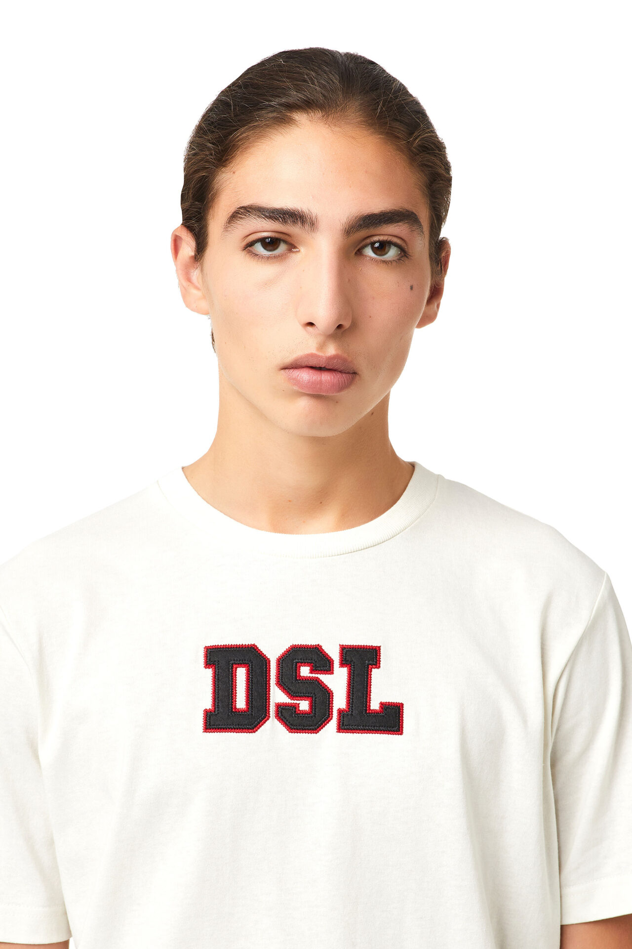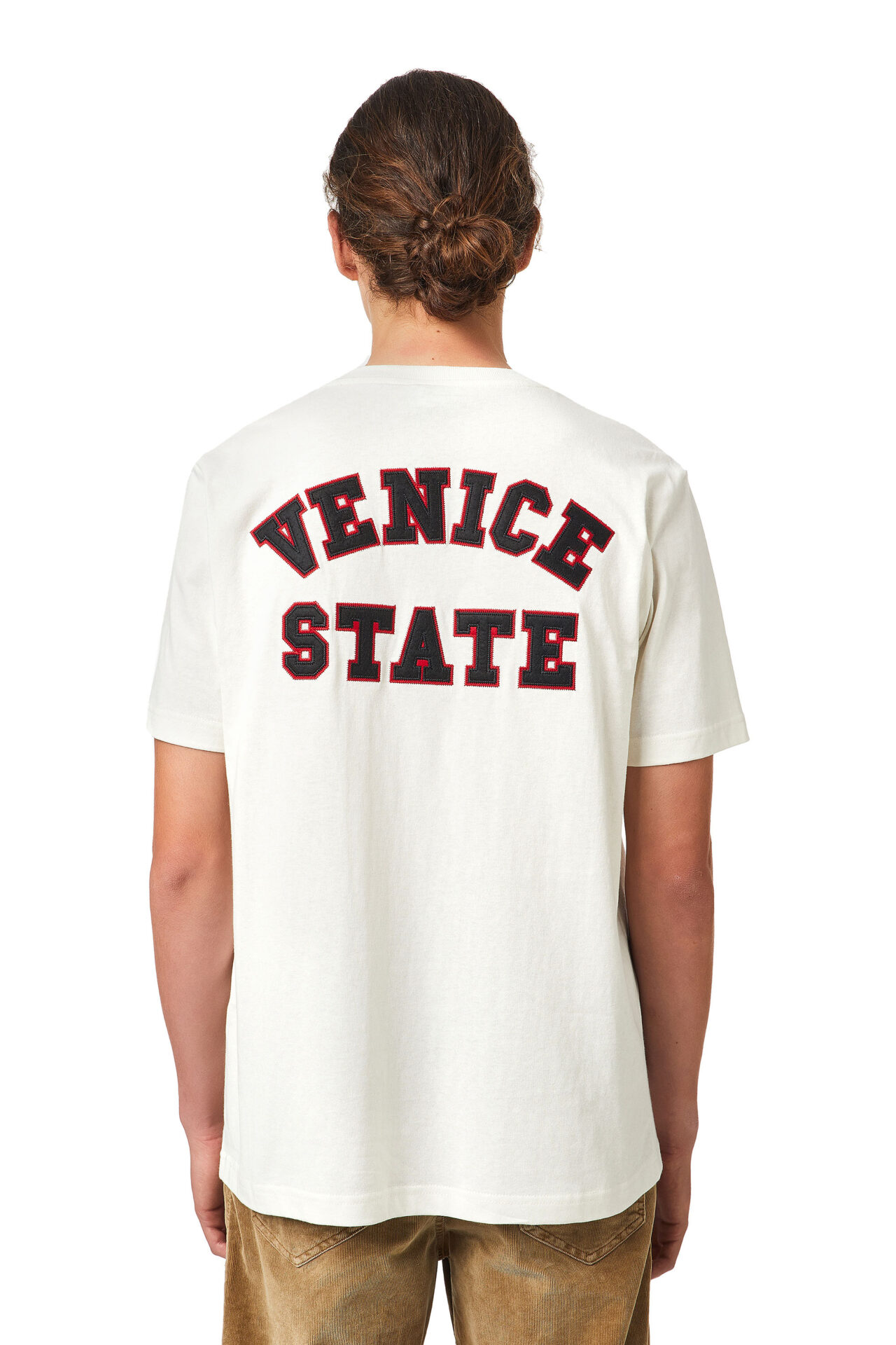 Regular-fit T-shirt made from substantial raw-look cotton jersey. Coloured felt varsity patches are stitched onto the front and back, spelling out DSL and 'Venice State'.