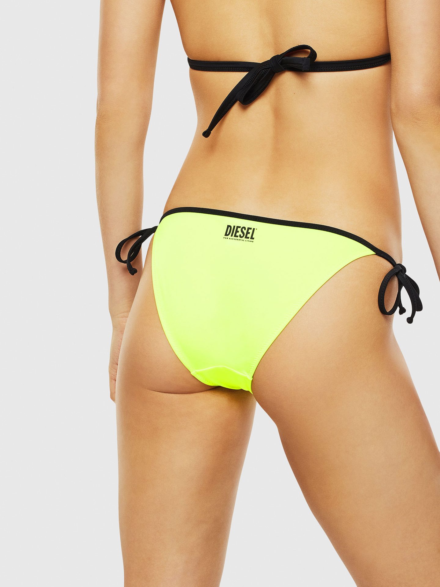 Side-tie bikini briefs featuring contrasting straps and Diesel logo at the back.