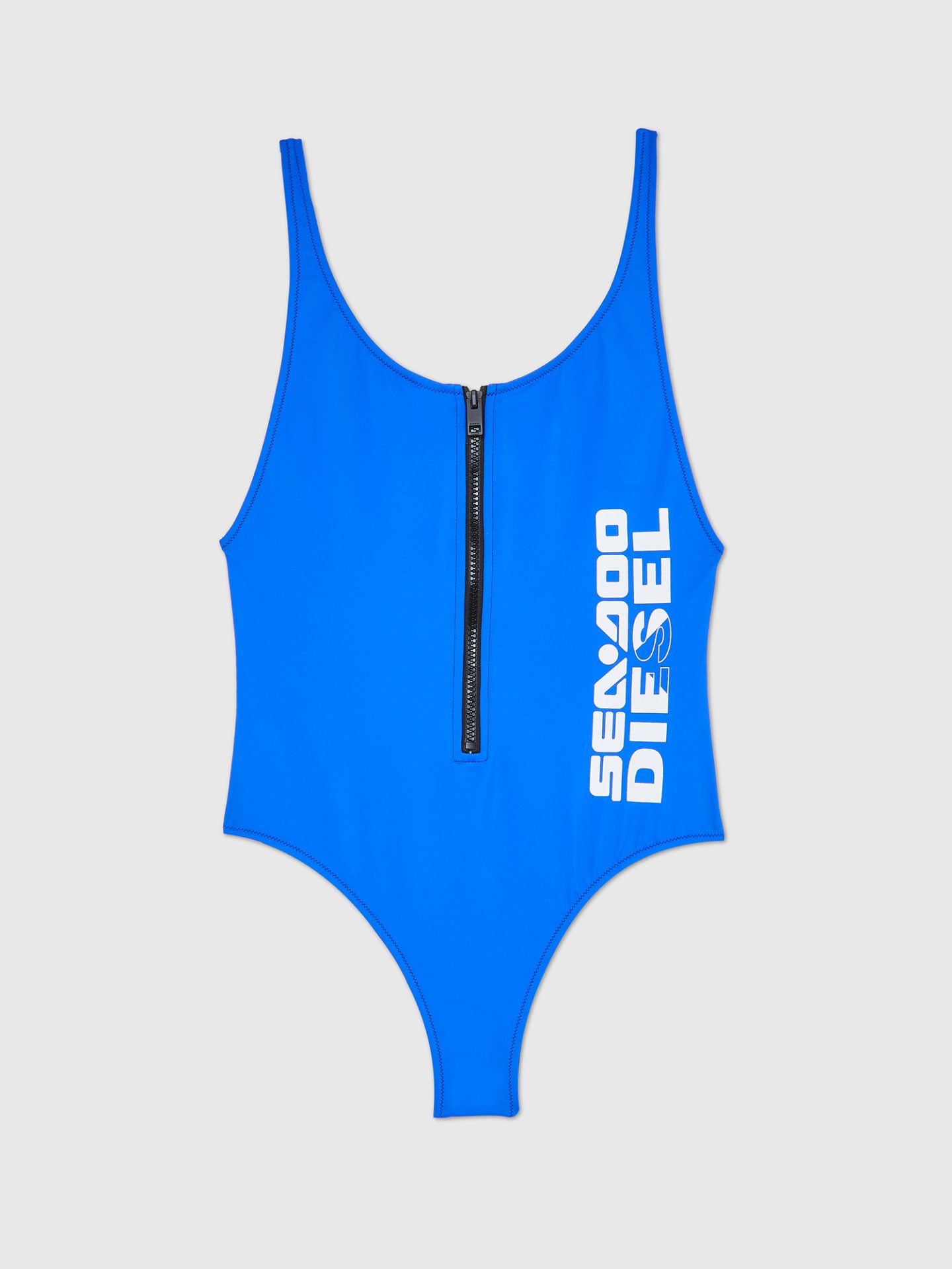 Limited-edition Lycra swimsuit, featuring a zipped front and scoop back. The design is part of the Diesel x Sea-Doo capsule and bears the collection's unique logo along the side.