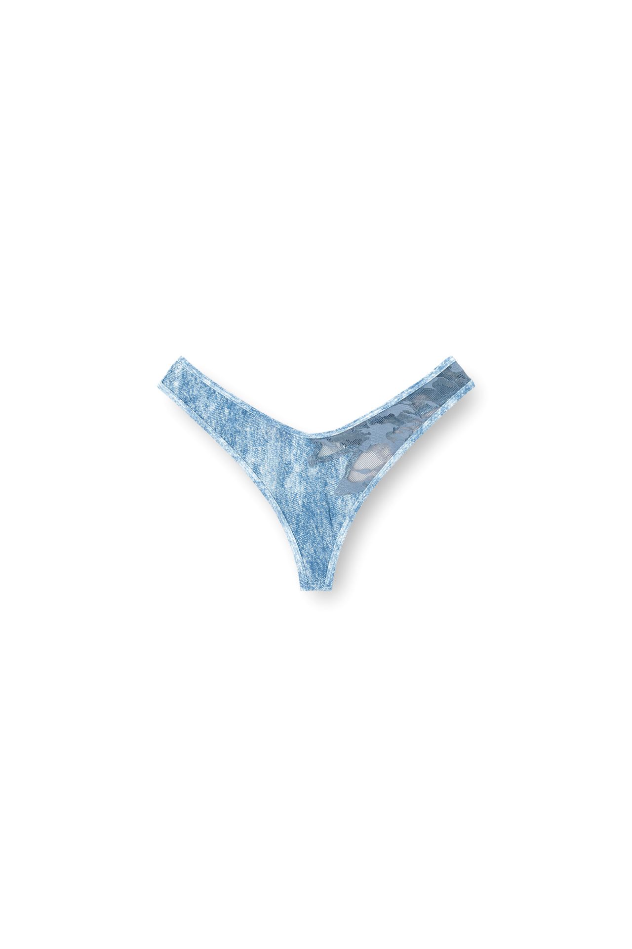 This women's thong is part of a limited-edition lingerie and apparel capsule fusing Diesel’s signature aesthetic and Rihanna’s unapologetic, body-positive ethos as expressed through her brand Savage x Fenty. Made from the softest microfibre showcasing a blue wash reminiscent of Diesel’s DNA fabric – denim, it has a high-cut leg and dramatically dipped front for a silhouette that's flattering and dynamic. The camouflage stretch lace insert adds a touch of sheerness and utilitarian appeal.
