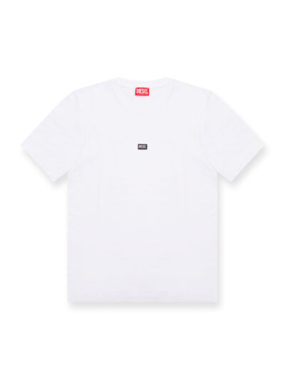 חולצת טי שחורה מבד כותנת ריב אלסטית בגזרה צמודה, עם עיטור רוכסן לבן אנכי במרכז החזה עם תליון לוגו D