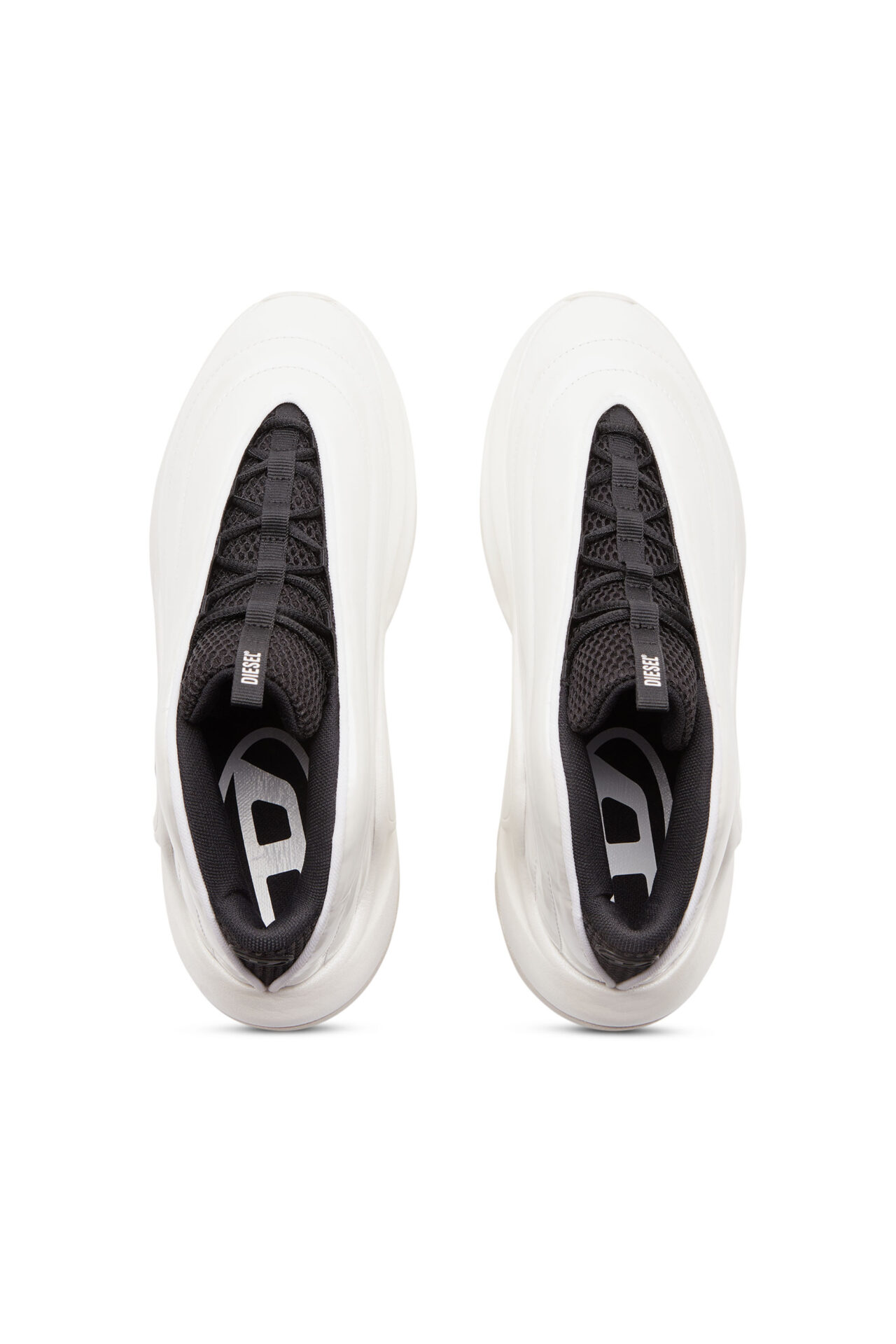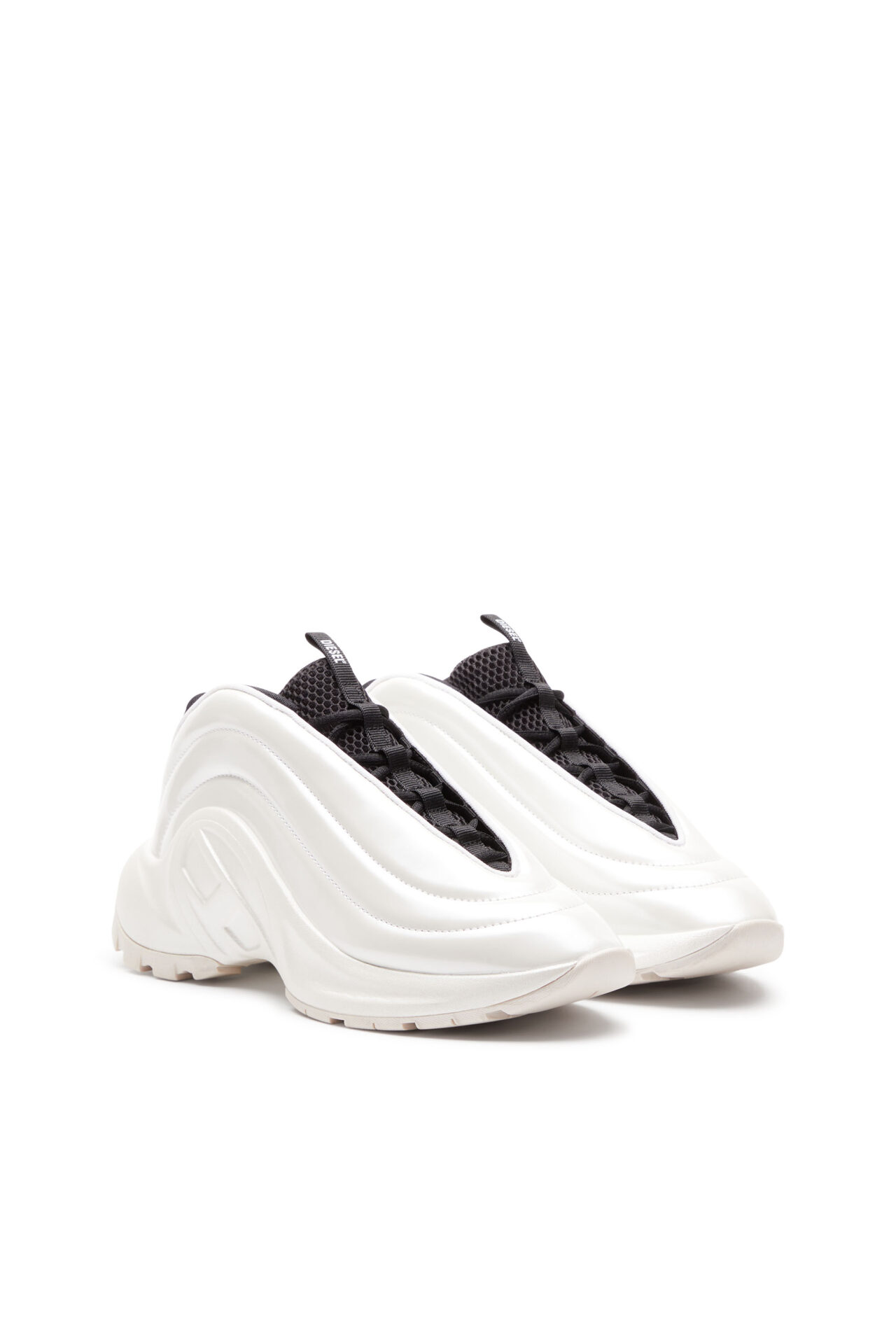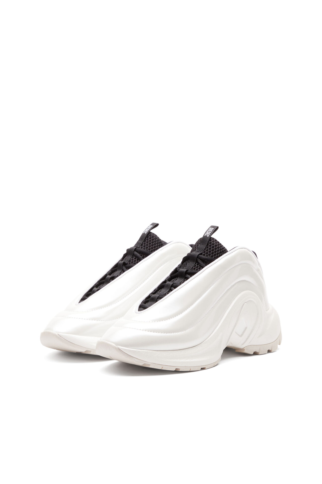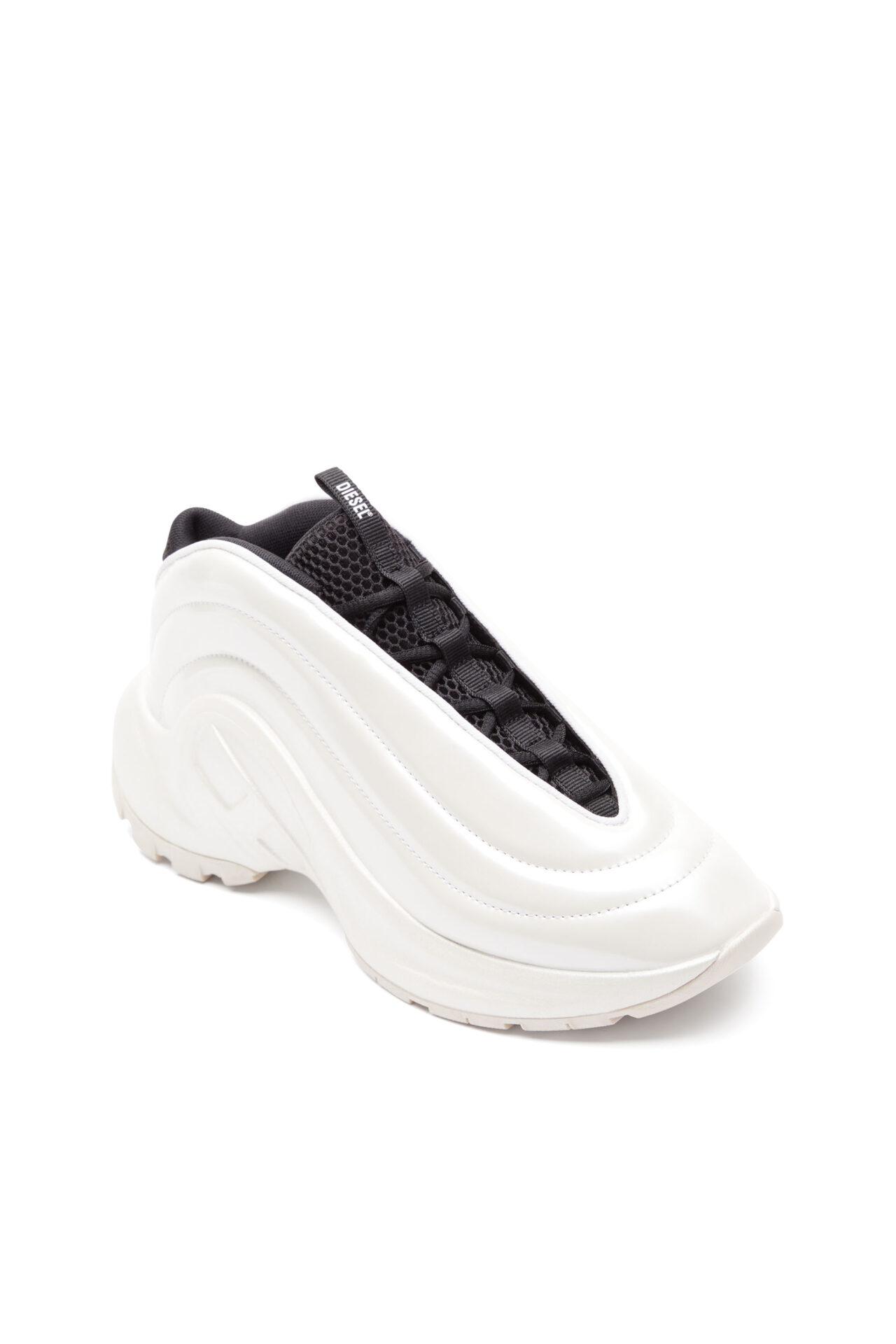 סניקרס בעיצוב עתידני לכל המגדרים, בגזרת סליפ-און מחומר מבריק עם חריצים מעוגלים, בד רשת שחור עם שרוכים והטבעה של לוגו D