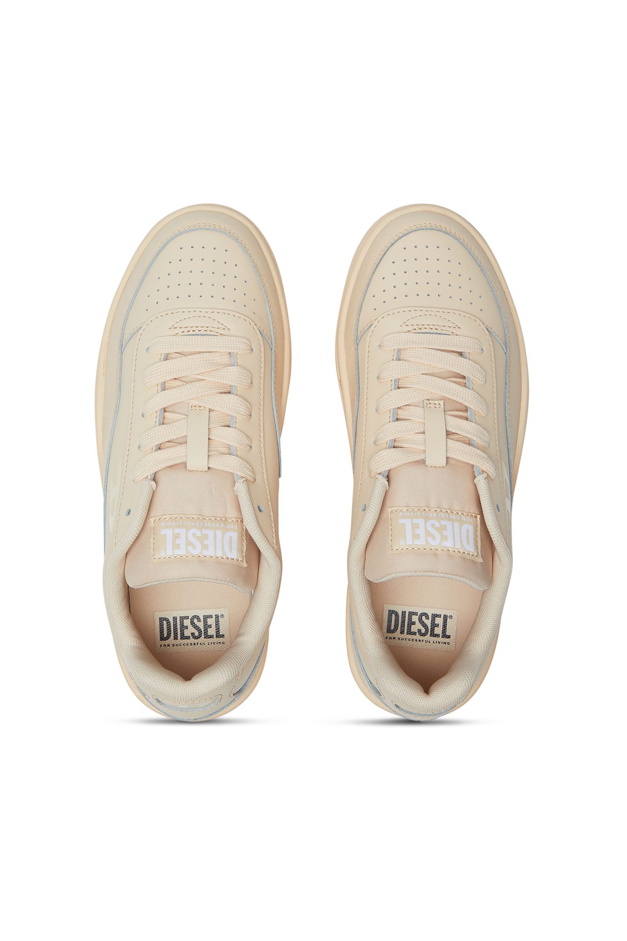 Women's low top sneaker made of soft calfskin leather with avant garde details. The nineties inspired upper has a classic silhouette, with contrasting Diesel logos on the tongue at the side. The chunky rubber sole has a custom tread.